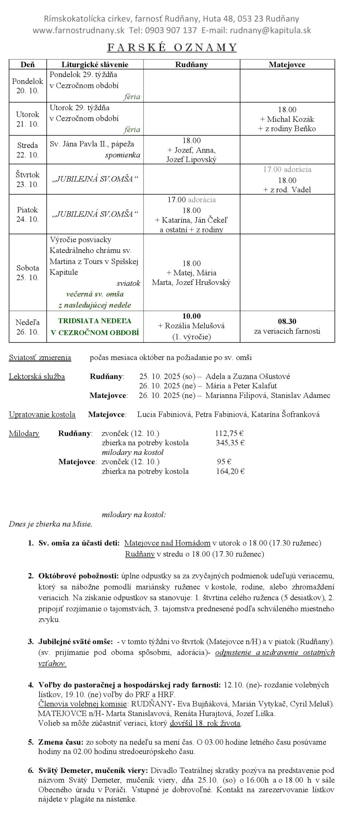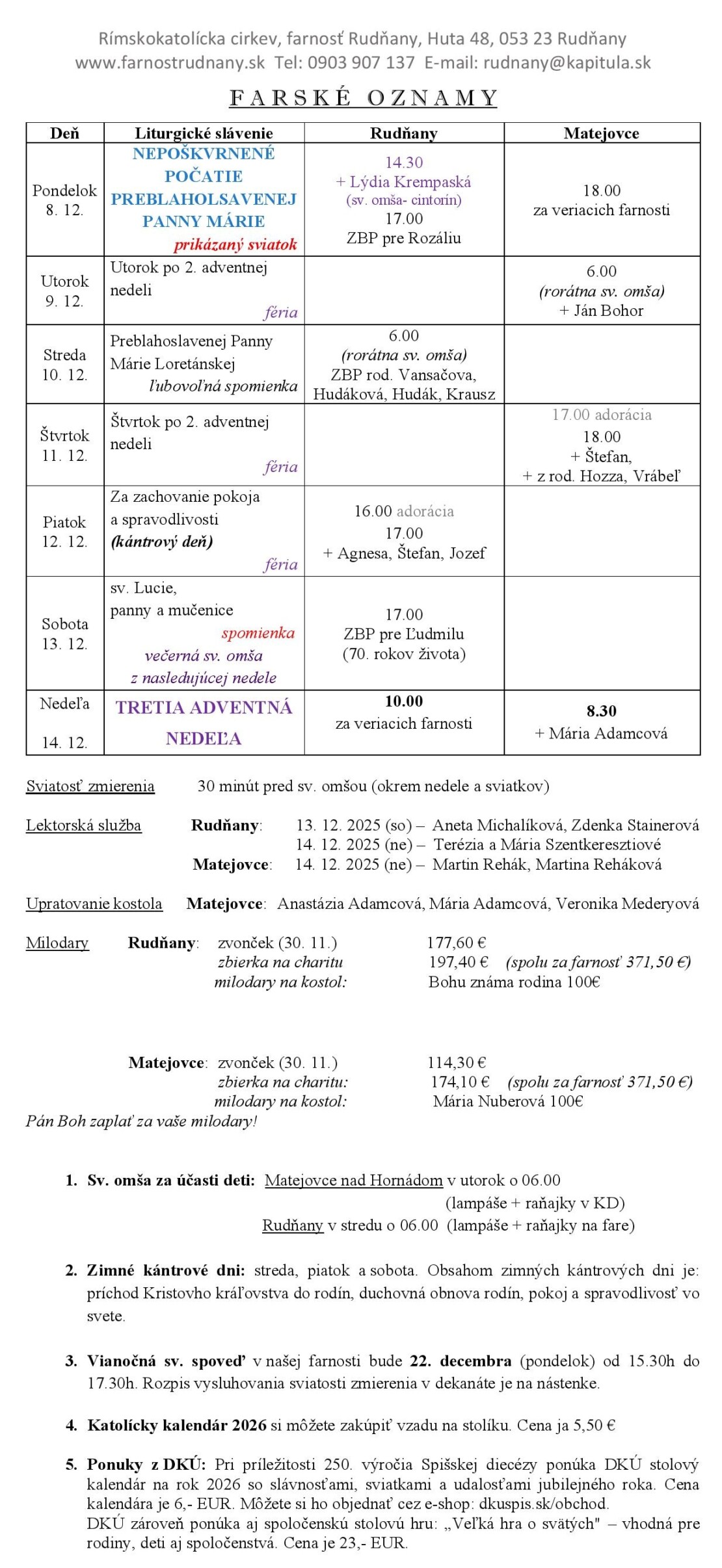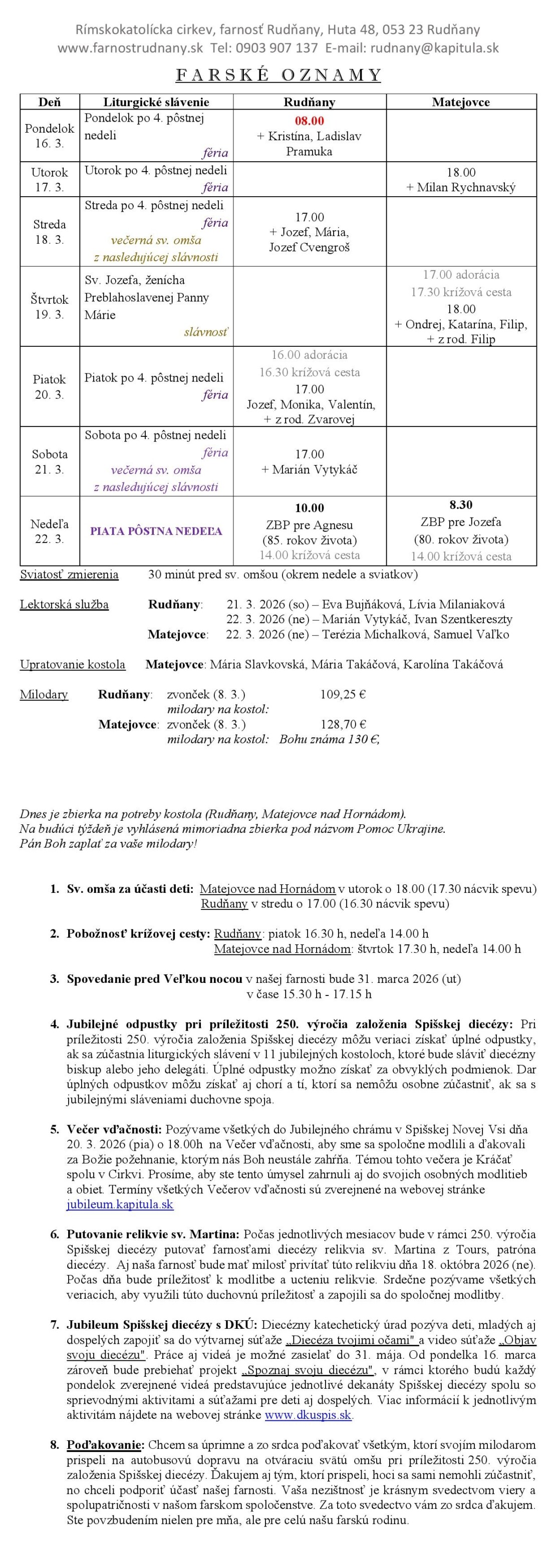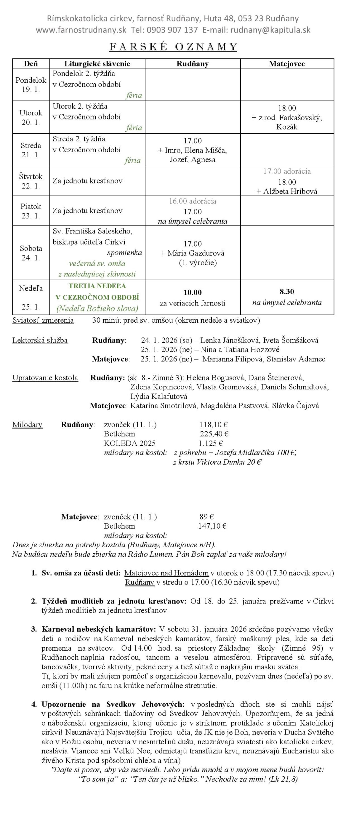 Farské oznamy - Farnosť Rudňany