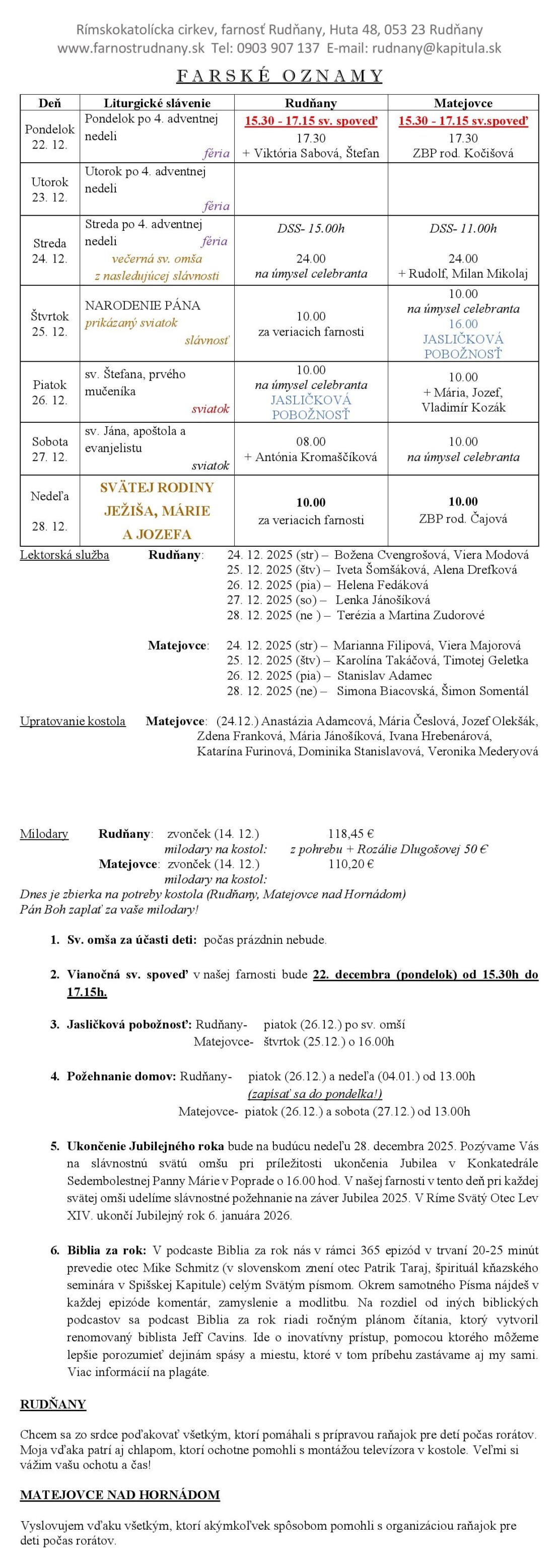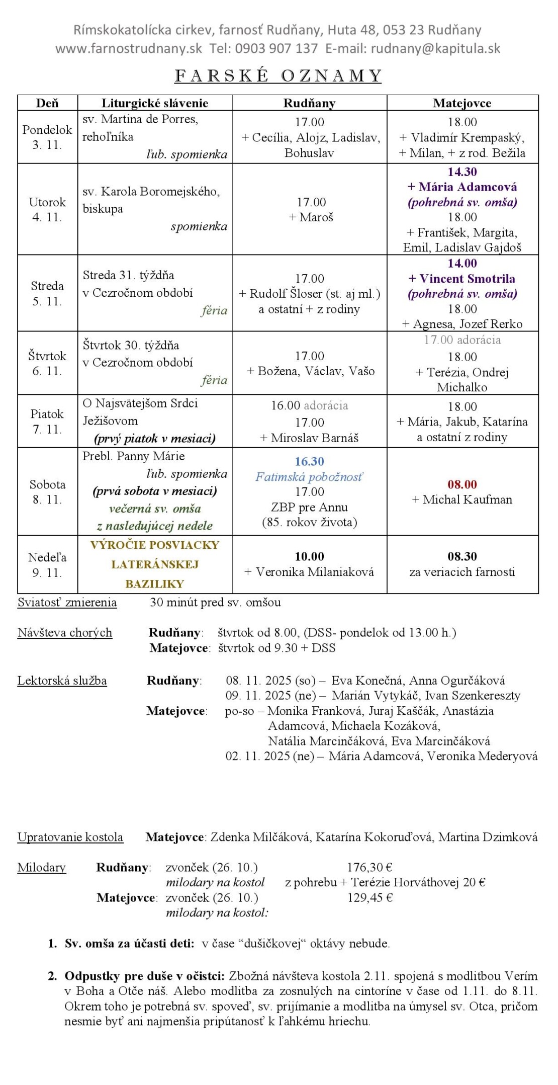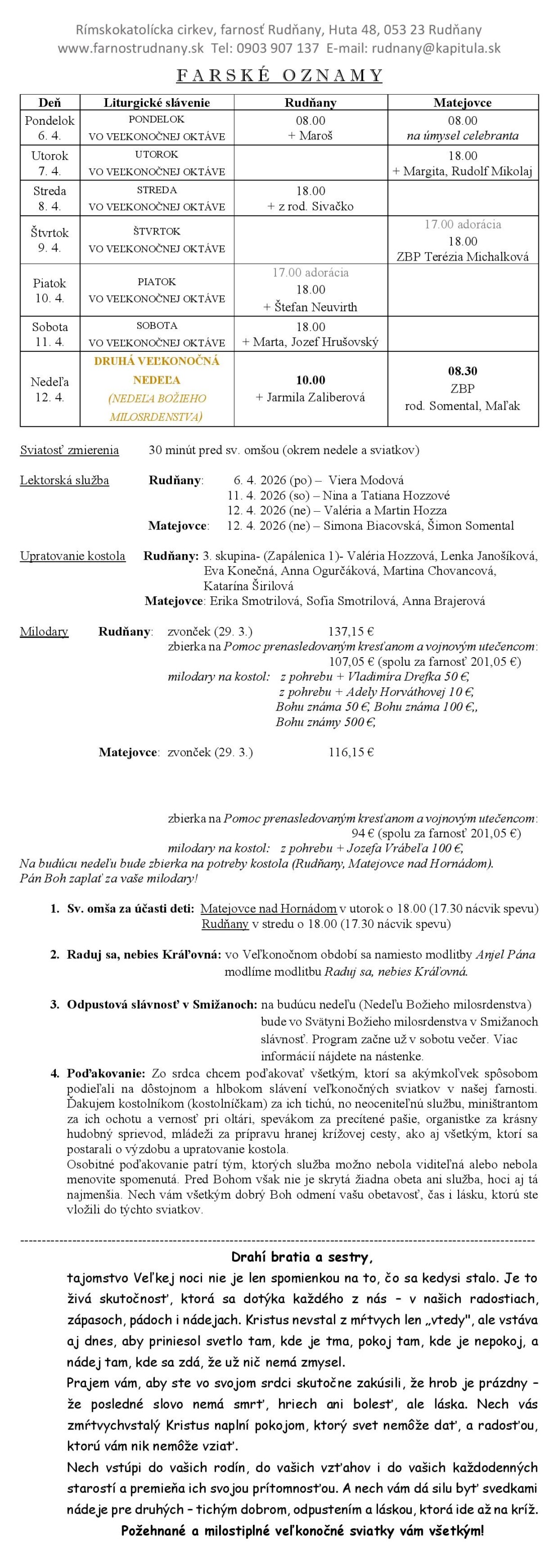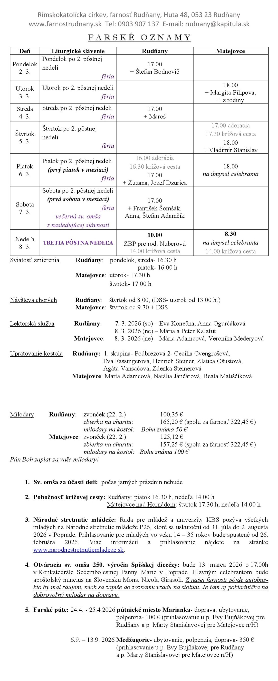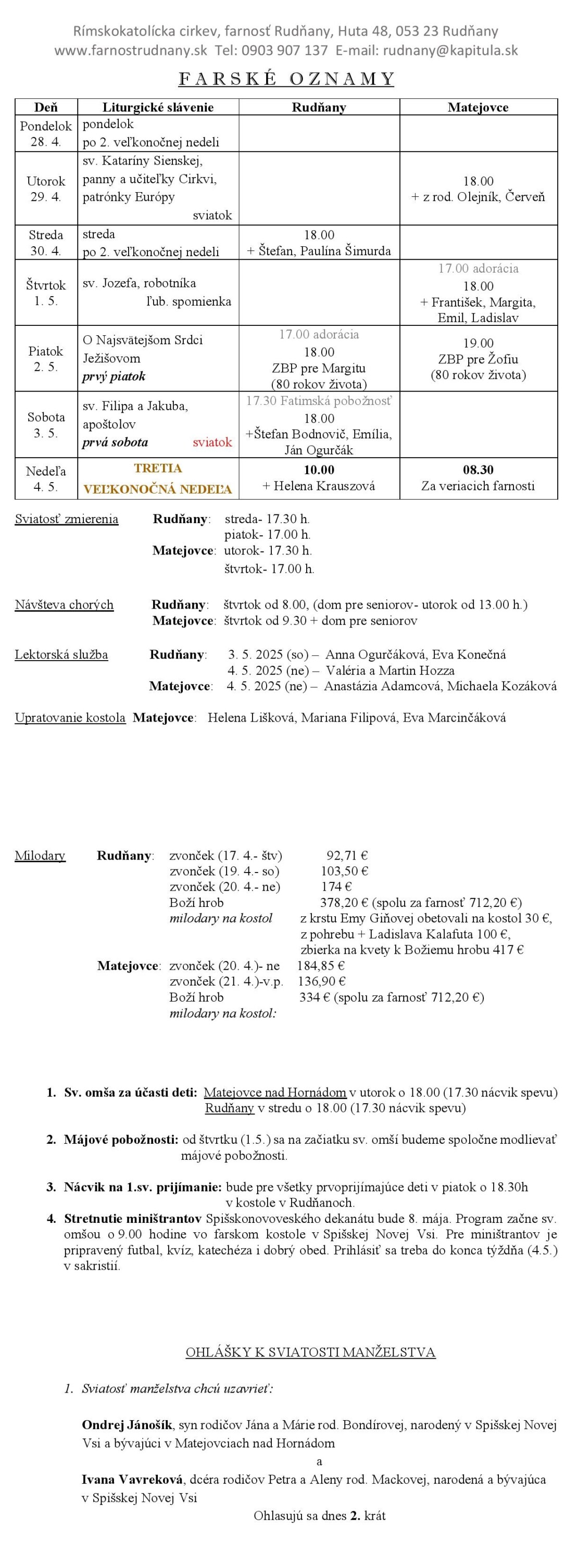 Farské oznamy - Farnosť Rudňany